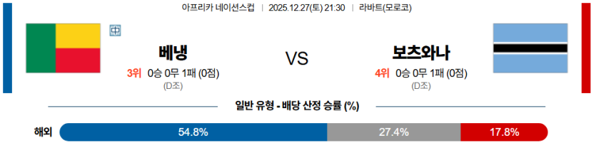 스포팡의 분석으로는 베냉이 **다알메이다의 조율과 공격진의 빠른 침투**를 앞세워, 전환 속도 문제를 해결하지 못한 보츠와나를 상대로 **대승**을 거둘 것이다.
