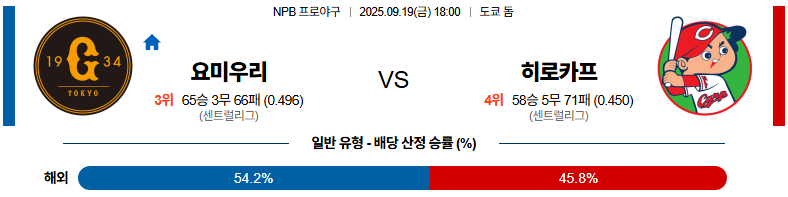 저득점 접전이 예상된다. 후반 마운드 집중력에서 히로시마가 상대적으로 앞서 있다.