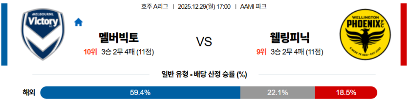 | 핸디캡 예측 | 웰링턴 피닉스 플핸 승 (+0.5) | • 멜버른의 압박 리스크 공략 |
