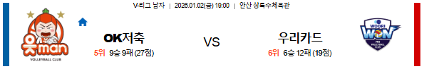 | 승패 예측 | OK저축은행 승리 | • 홈 6연승의 상승세 및 안정적인 공수 밸런스 |