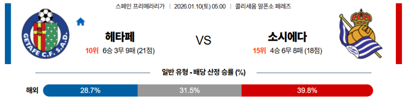 스포팡의 정밀 분석 결과, **수비 조직력과 실리성**에서 헤타페가 소시에다드보다 효율적인 경기를 펼칠 것입니다.