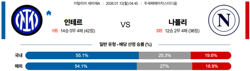스포팡의 정밀 분석 결과, **팀 밸런스와 화력**에서 인터 밀란이 나폴리를 압도할 것입니다.