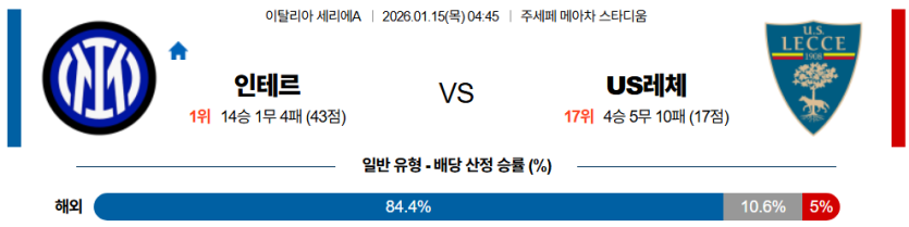 인터 밀란 (SC 인테르)과 US 레체의 맞대결이 쥐세페 메아차에서 펼쳐진다.
