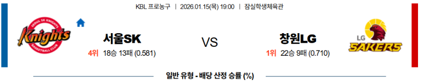 | 승패 예측 | 서울 SK 승리 | • 타마요 결장 & SK 상승세 |