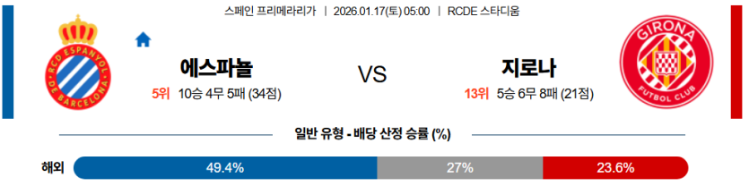 결국 에스파뇰이 홈 팬들 앞에서 귀중한 승점 3점을 챙길 것으로 예상된다.