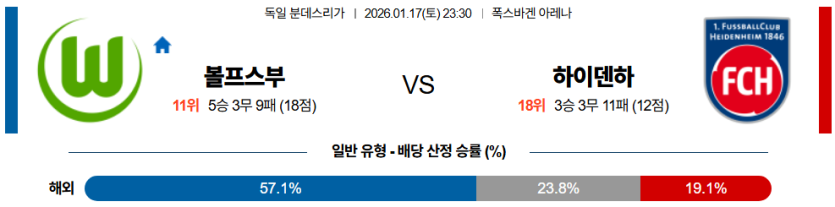 VfL 볼프스부르크와 1. FC 하이덴하임의 맞대결이 폭스바겐 아레나에서 펼쳐진다.