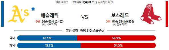 오클랜드 애슬레틱스 vs 보스턴 레드삭스