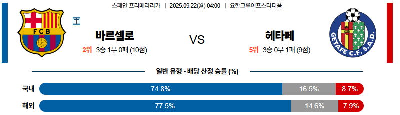 2025년 9월 22일 04시 00분, 라리가에서 바르셀로나와