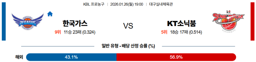 | 승패 예측 | 수원 KT 승리 | • 가스공사 수비 붕괴 |