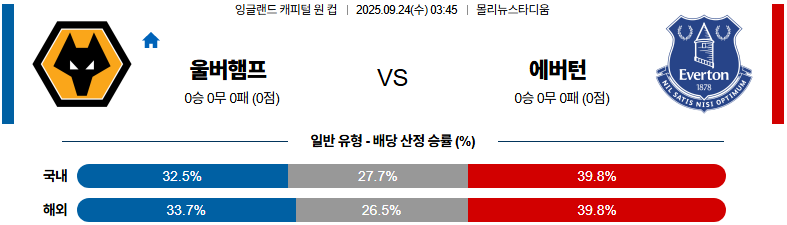 2025년 9월 24일 03시 45분, 잉글랜드 캐피털 원 컵에서 울버햄튼과 에버턴이 맞붙는다.
