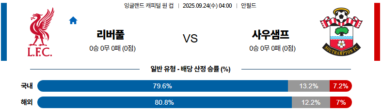 승/패 선택 이유: 리버풀은 전술적 완성도와 압박 강도가 월등하며, 사우샘프턴은 로테이션으로 집중력이 떨어질 수 있다.