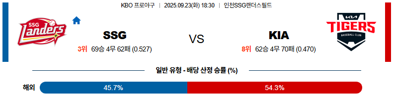 2025년 9월 23일 18시 30분, KBO에서 SSG 랜더스와 KIA 타이거즈가 맞붙는다.