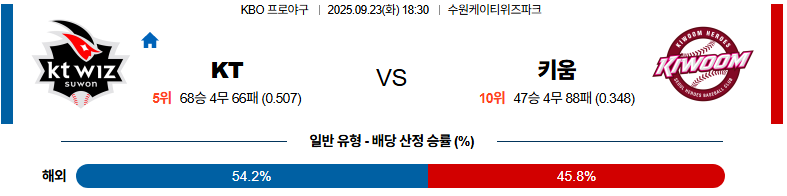 2025년 9월 23일 18시 30분, KBO에서 KT 위즈와 키움 히어로즈가 맞붙는다.