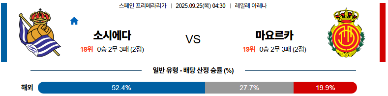 2025년 9월 25일 04시 30분, 라리가에서 레알 소시에다드와 RCD 마요르카가 맞붙는다.