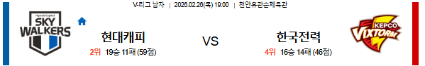 | 승패 예측 | 현대캐피탈 승 | • 홈 경기 9연승의 막강한 안방 파워 우위 |