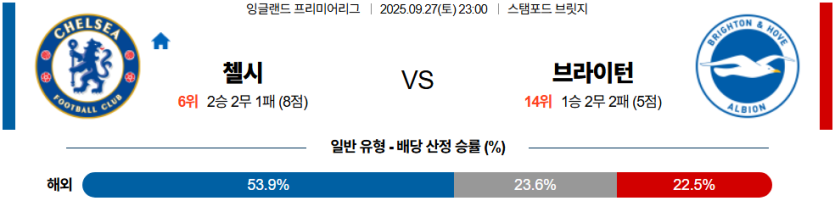 2025년 9월 27일 23시, 프리미어리그에서 첼시와 브라이튼이 맞붙는다.