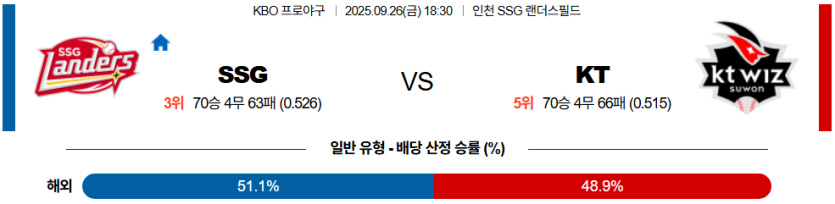 2025년 9월 26일 18시 30분, KBO 리그에서 SSG 랜더스와