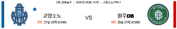 | 승패 예측 | 고양 소노 승 | • 창단 최다 10연승의 압도적인 기세 및 공수 밸런스 |