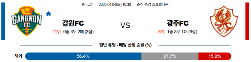이 경기는 강원 FC의 전술적 완승과 함께 강원의 무자비한 화력에 따른 다득점(오버) 양상이 유력하게 기대된다.