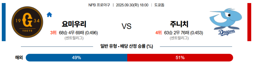 이번 경기는 요미우리 자이언츠의 신승이 예상된다.
