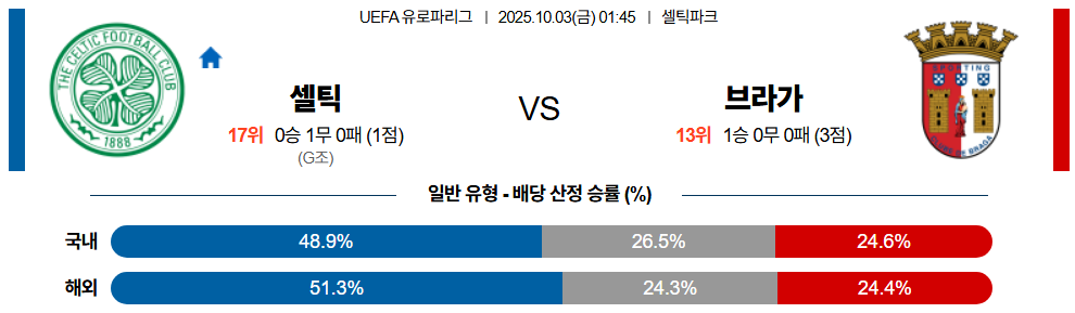 2025년 10월 3일 UEFA 유로파리그, 셀틱 FC와 SC 브라가가 맞붙는다.