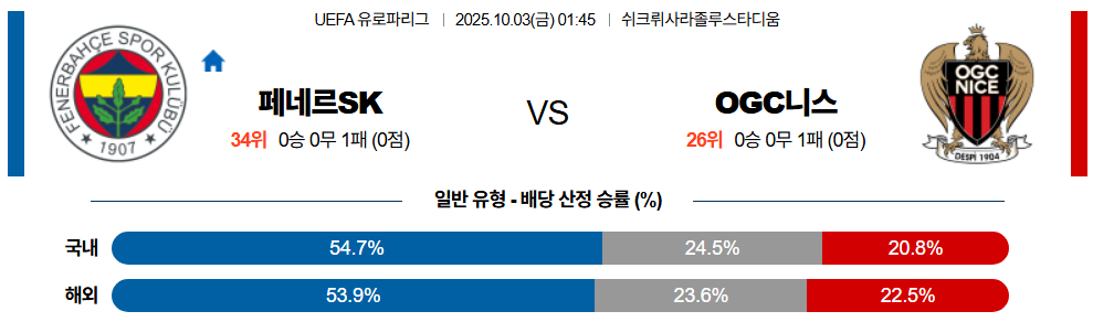 2025년 10월 3일 UEFA 유로파리그, 페네르바체와 OGC 니스가 맞붙는다.