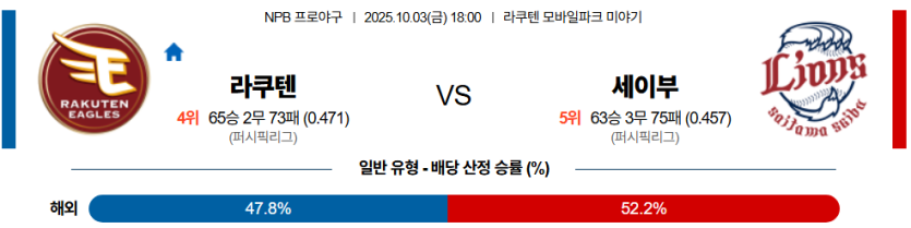 2025년 10월 3일 18시, NPB 라쿠텐 골든 이글스와