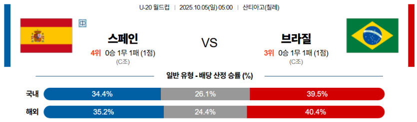 전술 완성도, 중원 장악, 전환 속도 모두에서 브라질이 한 수 위다. 스페인은 압박 대응과 마무리 효율에서 한계를 보이고 있어 브라질이 경기 초반부터 주도권을 잡을 가능성이 높다.