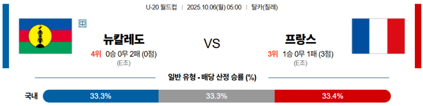 2025년 10월 6일 U-20 월드컵, 뉴칼레도니아와 프랑스의 맞대결이다.
