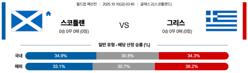 | 승패 예측 | 스코틀랜드 승 | • 홈 압박 강도·세컨볼 회수력 우위 |