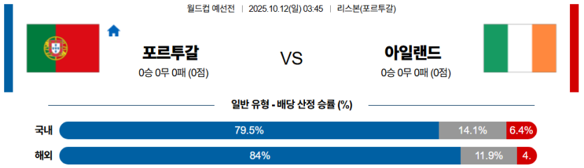 | 언더/오버 | 오버 (2.5) | • 포르투갈의 전방 화력과 점유형 압박 기대 |
