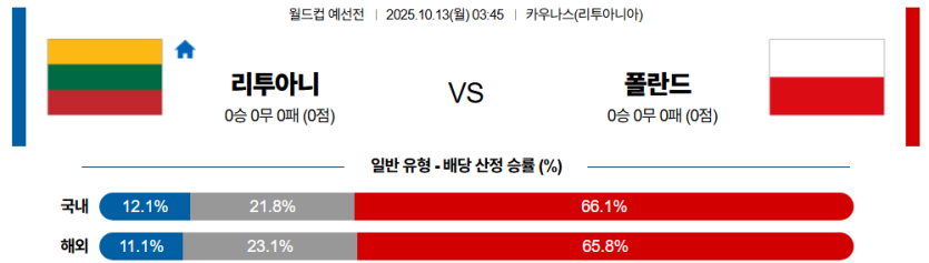 | 언더/오버 | 오버 (2.5) | • 폴란드의 공격 주도 + 리투아니아의 수비 불안 |
