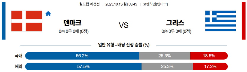| 언더/오버 | 언더 (2.5) | • 덴마크의 안정적 경기 운영 + 그리스 득점력 제한 |