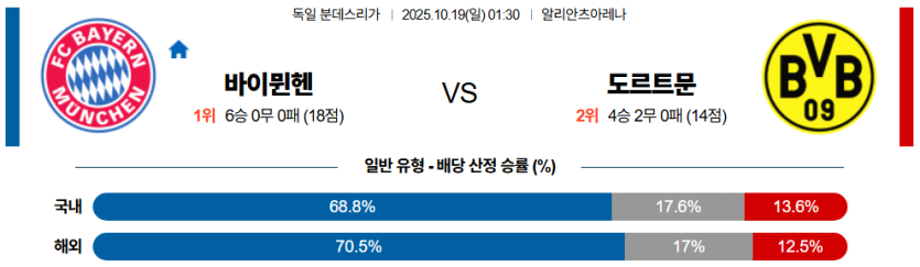 이 경기는 뮌헨의 전술 밸런스와 미드필드 장악력이 도르트문트의 불안정한 수비 라인을 무너뜨리며 홈팀의 압승으로 이어질 가능성이 높다.