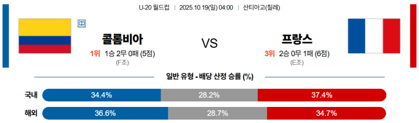 콜롬비아가 체력적 우위와 공수 전환 속도를 바탕으로 프랑스를 제압할 것이다.