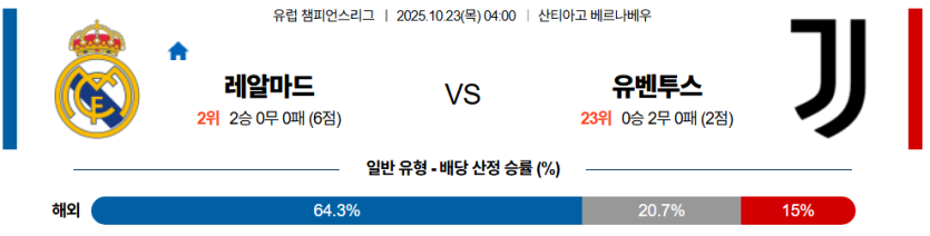 | 핸디캡 예측 | 레알 마드리드 마핸 승 (-1.5) | • 최정상급 공격력과 유벤투스 수비 조직력 불안 반영 |