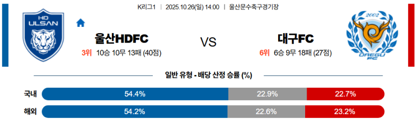 울산 수비 불안정성 대비 대구의 높은 동기 부여 반영