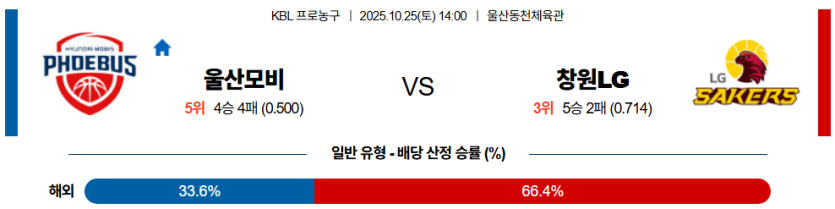 창원 LG 마핸 승이 가장 유력하며, 양 팀 모두 수비 집중력이 높은 편이므로 **언더 (150.5)**를 추천한다.
