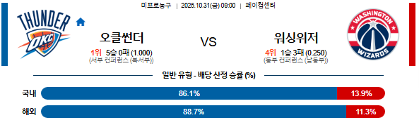 오클라호마시티는 SGA의 득점 리딩과 빠른 트랜지션으로 워싱턴의 후반 수비 붕괴를 집중 공략할 것이다.