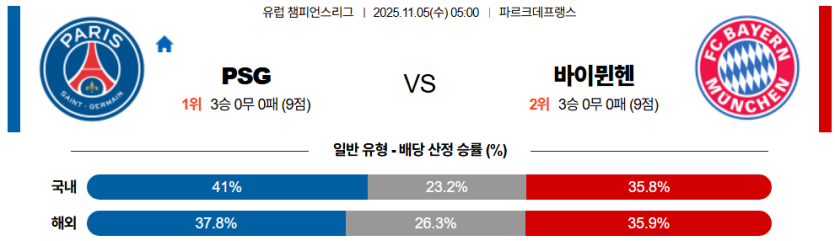 | 언더/오버 | 오버 (2.5) | • 파리의 공격 효율 극대화 및 뮌헨의 뒷공간 노출 반영 |