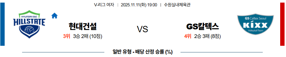 | 승패 예측 | 현대건설 승 | • 리시브 안정성과 세트 템포 유지력 우위 |