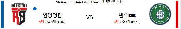 이 경기는 **안양 정관장의 수비 집중력**이 원주 DB의 공격을 무력화시킬 것이다.