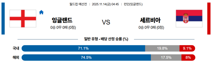 결국 **체력 저하가 가속화**되는 후반부로 갈수록 세르비아의 간격 유지는 무너질 것이며, 잉글랜드가 경기 흐름을 완전히 주도할 전망입니다.