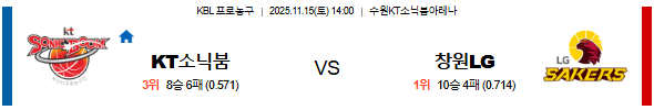 이 경기는 창원 LG의 강한 압박 수비가 KT의 약점을 공략하겠지만, LG의 일정 부담으로 박빙의 승부가 예상된다.