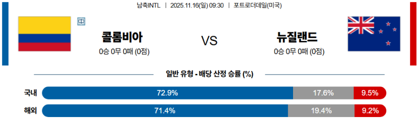 | 언더/오버 | 오버 (2.5) | • 캄파즈-하메스-디아스 연계 효율 및 뉴질랜드 수비 리스크 반영 |