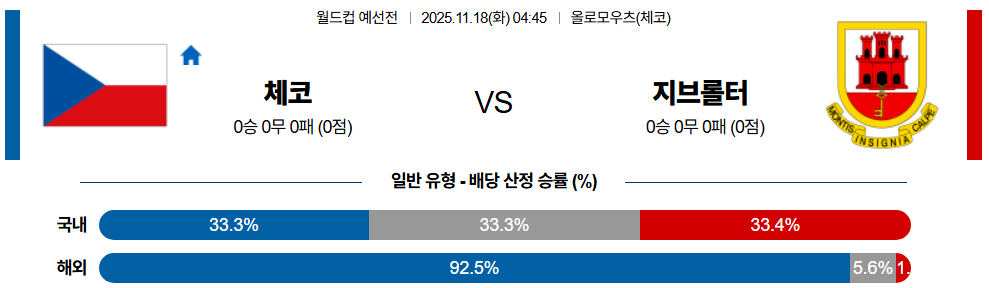 이 경기는 **'빌드업의 질과 전술 구조'**의 격차가 심하며, 체코가 자연스럽게 다득점 경기 흐름을 만들 것이다.