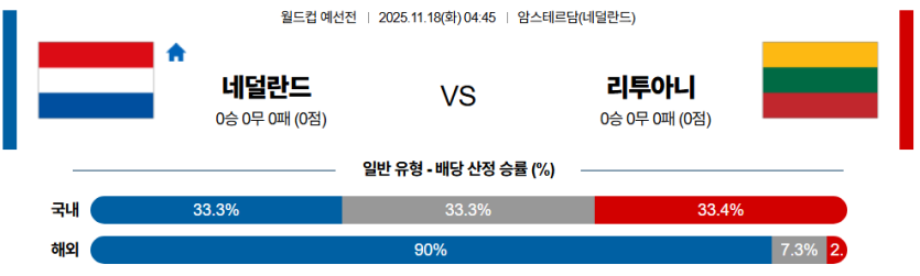 이 경기는 **'데용의 템포 조절'**이 **'리투아니아의 느린 수비 전환 속도'**를 압도하며, 네덜란드가 경기 전체를 지배할 것이다.