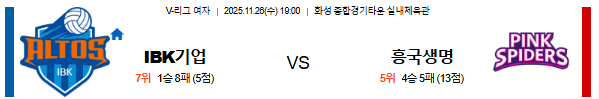 | 승패 예측 | 흥국생명 승 | • 레베카의 득점력과 IBK의 총체적 난국 |