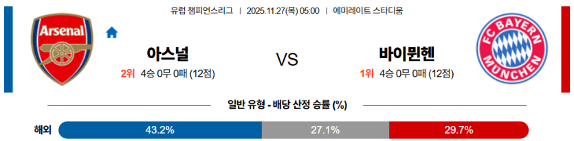 | 핸디캡 예측 | 바이에른 뮌헨 플핸 승 (+0.5) | • 아스널의 구조적 약점 노출로 인한 뮌헨 우세 예상 |