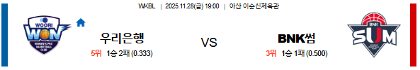 이 경기는 백코트의 우위와 조직력을 앞세운 BNK 썸이 접전 끝에 승리할 것으로 예상된다.
